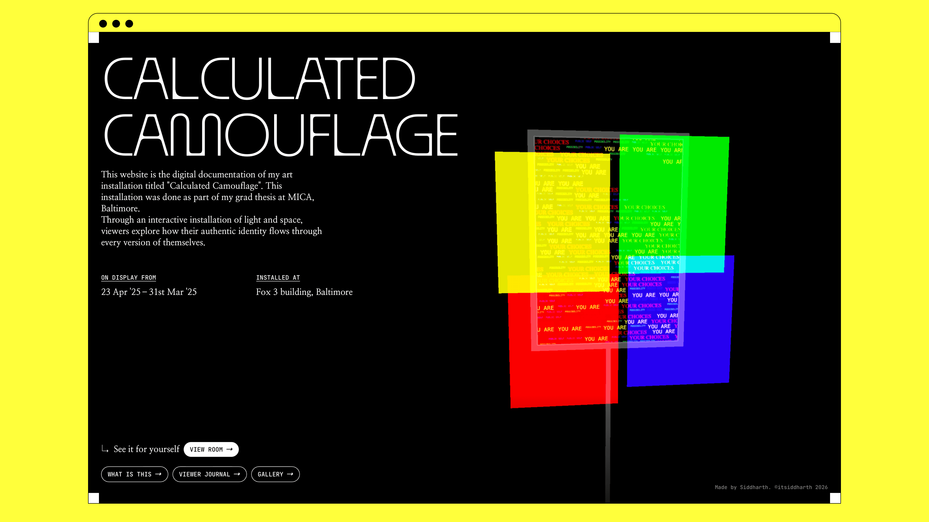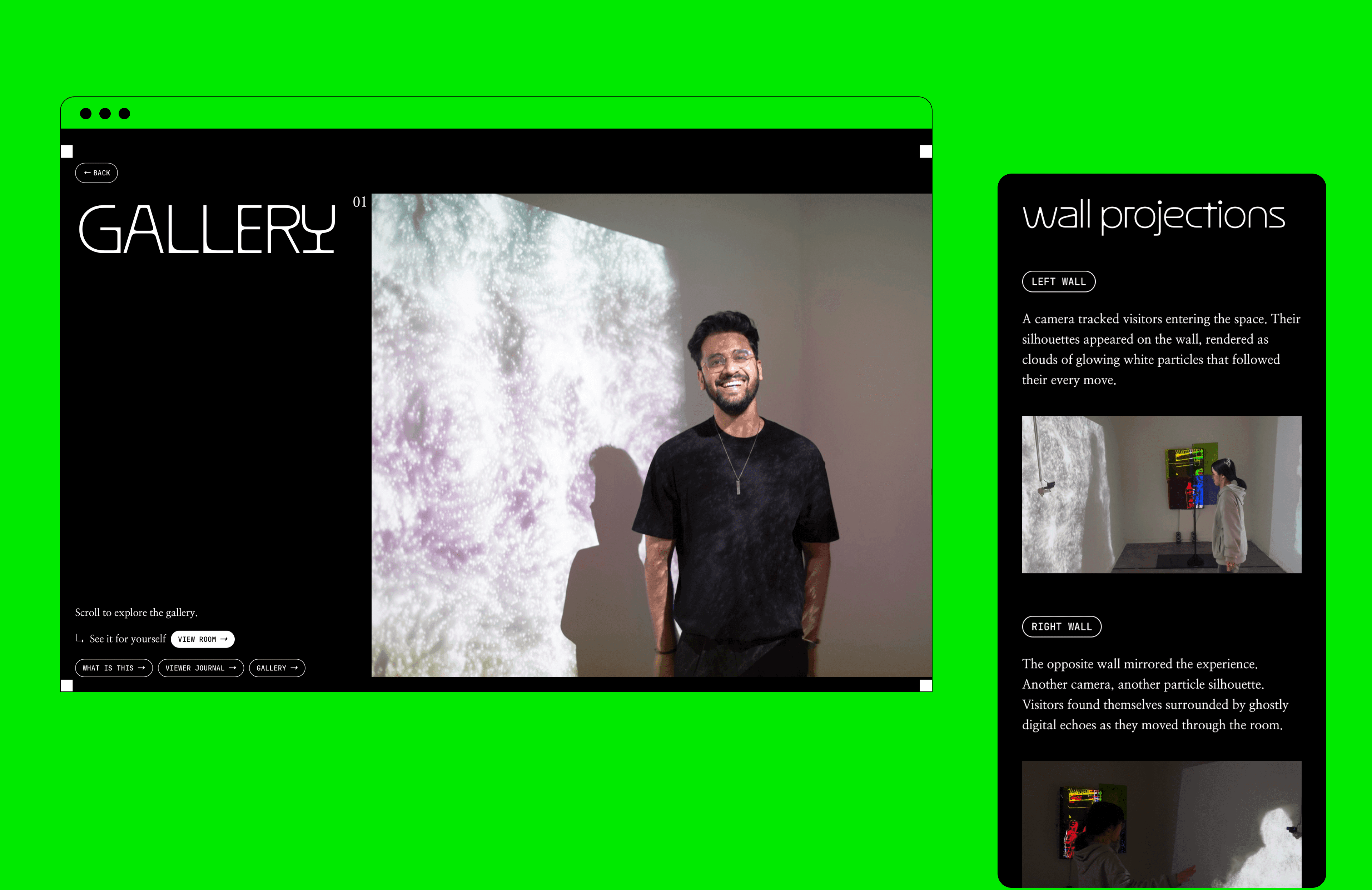 a digital replica of my immersive installation that was up in March'25. users can browse the room in an immersive website built with cursor v0 and claude.